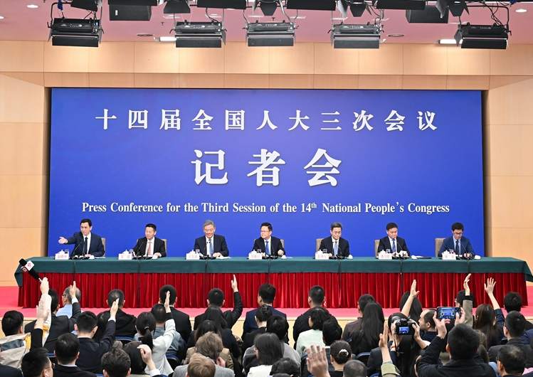 全国人大常委会办公厅新闻局局长金晴中:媒体朋友们,大家好!欢迎参加十四届全国人大三次会议记者会,本场的主题是经济主题。大会新闻中心很高兴邀请五位嘉宾出席今天的记者会,并回答大家的提问。五位嘉宾分别是:国家发展和改革委员会主任郑栅洁先生,财政部部长蓝佛安先生,商务部部长王文涛先生,中国人民银行行长潘功胜先生,中国证券监督管理委员会主席吴清先生。